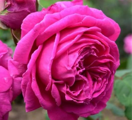 Кенг тарқалган бўлиб, у кўпинча энг хушбўй атиргул деб ҳисобланади ва яхши сабабларга кўра. Арома жуда бой, қалин, пишган малинани эслатади. Баландлиги 2 м ва кенглиги 1,5 м гача бўлган жуда кучли бута. Биринчи гуллашда гуллар катта, чиройли шаклга эга, иккинчи гуллашда бой бинафша-қизил рангга эга, улар кичикроқ ва кўпинча деформацияланади. Кукунли чириётганга мойил. Ўрама  атиргул каби яхши, лекин фақат шамоллатилган жойда
